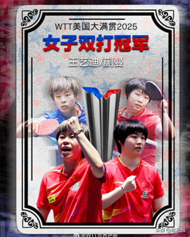 北京時間7月13日,WTT美國大滿貫女雙決賽迎來國乒“內戰”。最終王藝迪/蒯曼以3比2戰勝孫穎莎/王曼昱,贏得美國大滿貫女雙冠軍。