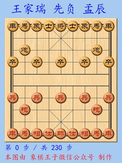 紅無力迴天,黑血戰230手,卒定宮頂位,車炮連將,就地致勝,孟辰強勢挺進,劍指桂冠。