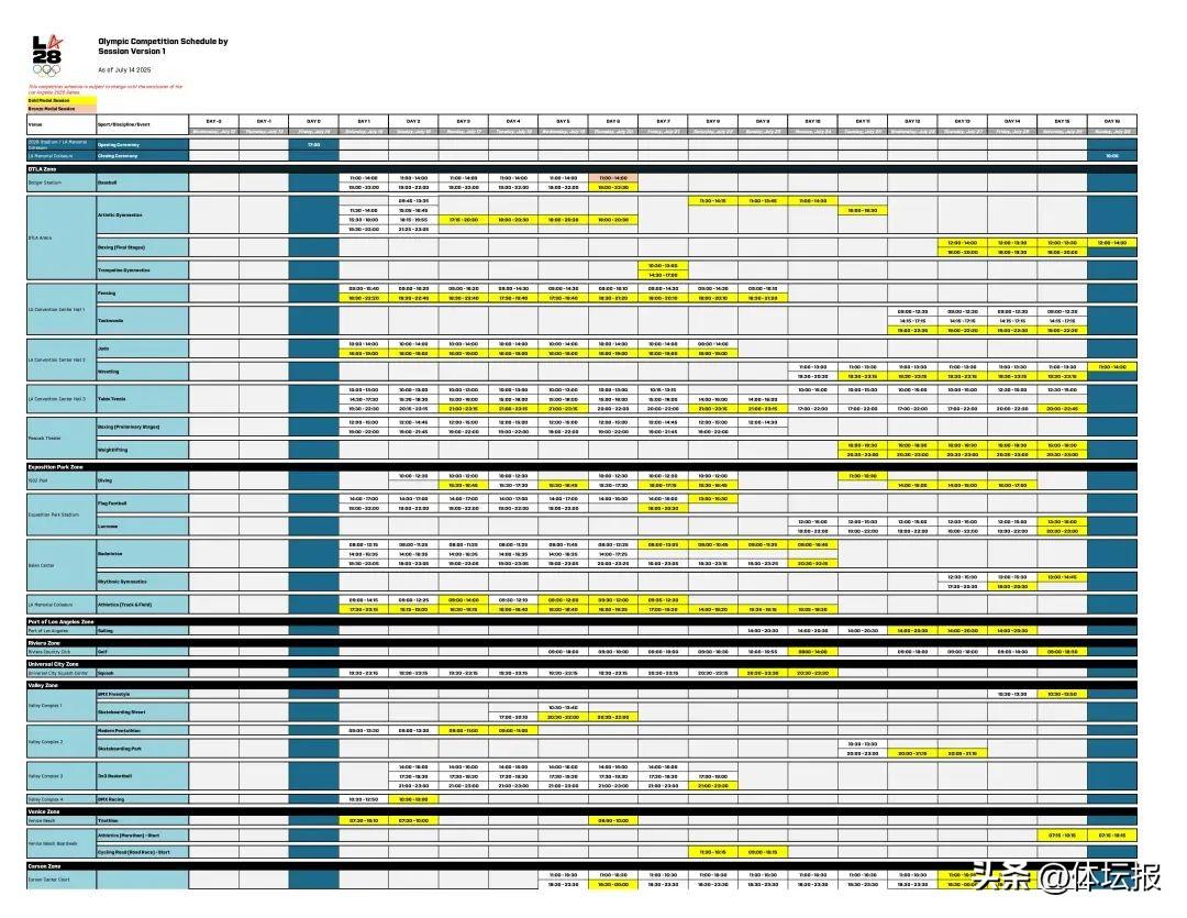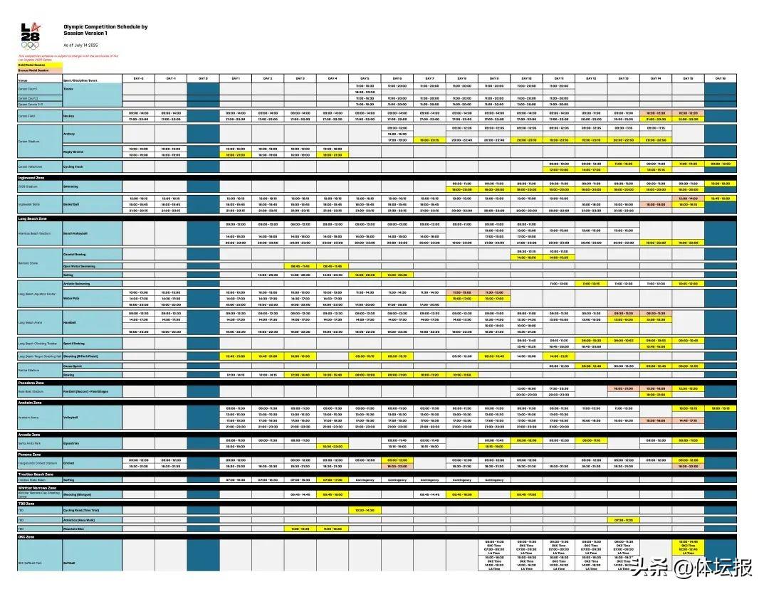 北京時間7月14日,在2028洛杉磯奧運會倒計時三週年之際,洛杉磯奧運會官方正式公佈首版詳細賽程!觀衆可前往洛杉磯奧運會官網 https://la28.org 查看各項目比賽時間。