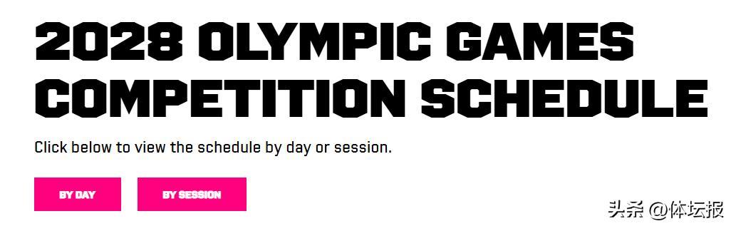 在官網首頁“2028 OLYMPIC GAMES COMPETITION SCHEDULE”板塊點擊“BY SESSION”可以查看各項目各場次比賽時間(當地時間)如下:
