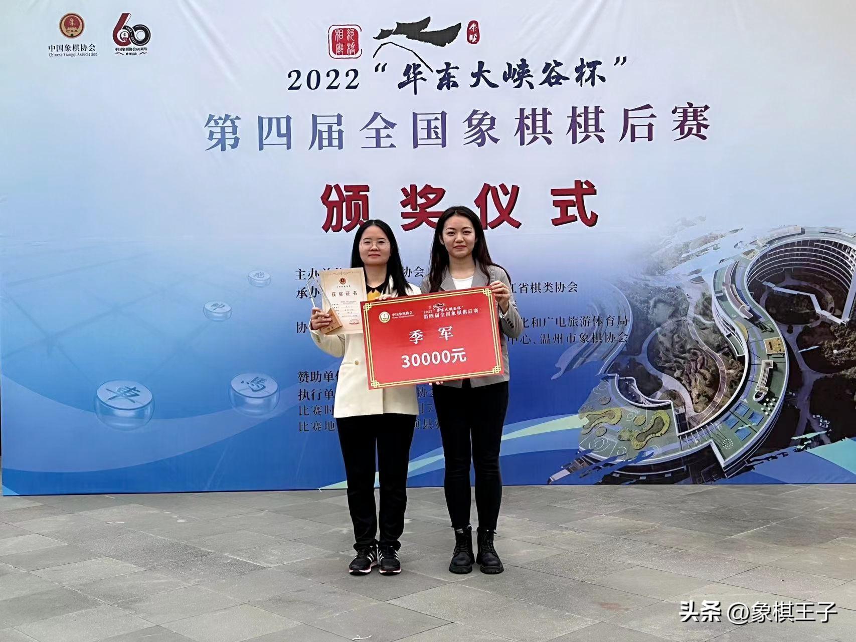 11月9日,相約廊橋·2022“華東大峽谷杯”第四屆全國象棋棋後賽在浙江泰順結束,杭州隊十九歲小將王文君獲得冠軍,攬下十萬元獎金,四川隊梁妍婷亞軍,得獎六萬,北京隊劉歡季軍,河北隊張婷婷殿軍。