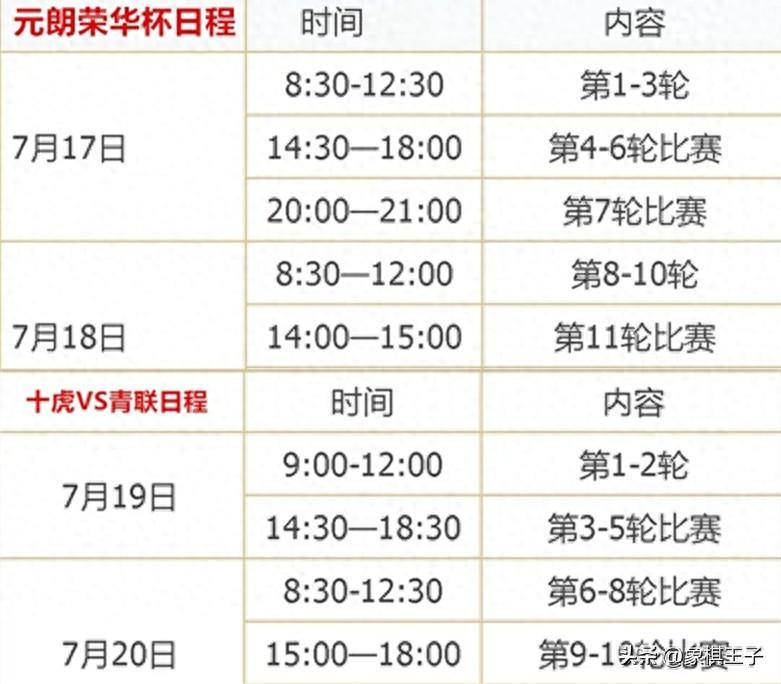 大戰賽程17日上午八點半,第1-3輪,下午兩點半,第4-6輪,晚上八點,第7輪;18日上午八點半,第8-10輪,下午兩點,第11輪。