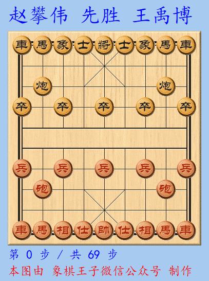 黑方老將只能移出,紅就地殺上黑將後,再退車卒林線,當下紅伏底線炮打車,加平車叫將喫炮,黑棋丟子告敗,王禹博69手認負,趙攀偉趁勢反超登上積分榜首。