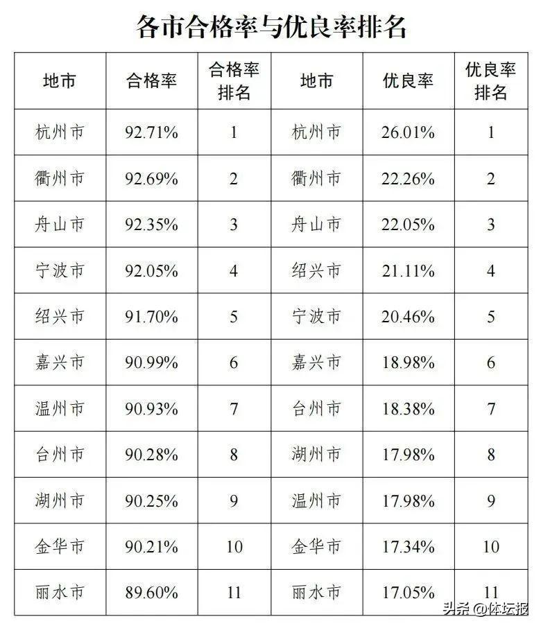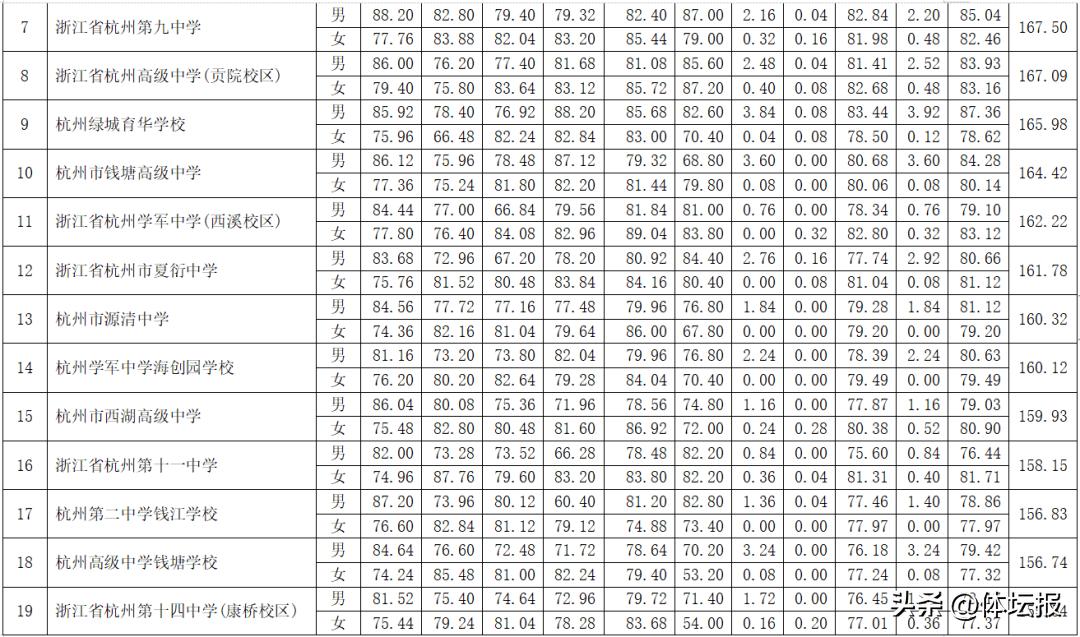 值得一提的是,在各地市總成績合格率和優良率排名中,杭州市均排名第一。其中,浙江大學附屬中學玉泉校區和丁蘭校區包攬了主城區普高學校(校區)高三年級抽測成績前兩名,丁蘭校區更是在引體向上單項中以99.20分一騎絕塵。