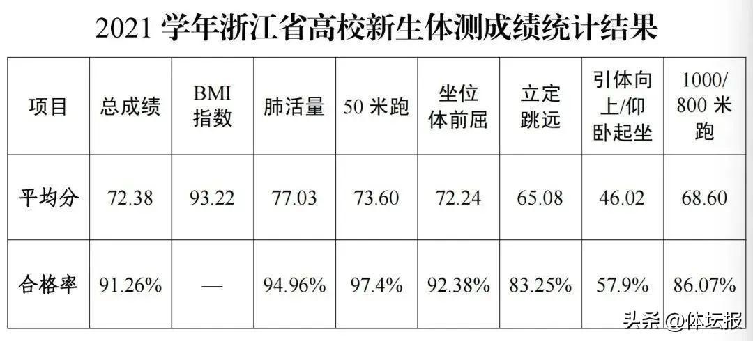 近日,浙江省教育廳辦公室發佈《關於2021學年高校新生(浙江籍高中畢業生)體質健康測試情況的通報》,引發關注。