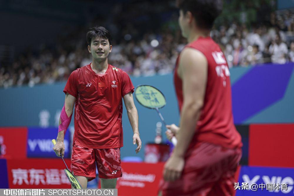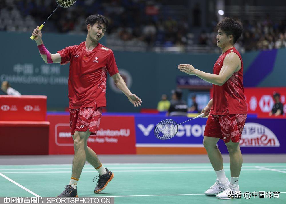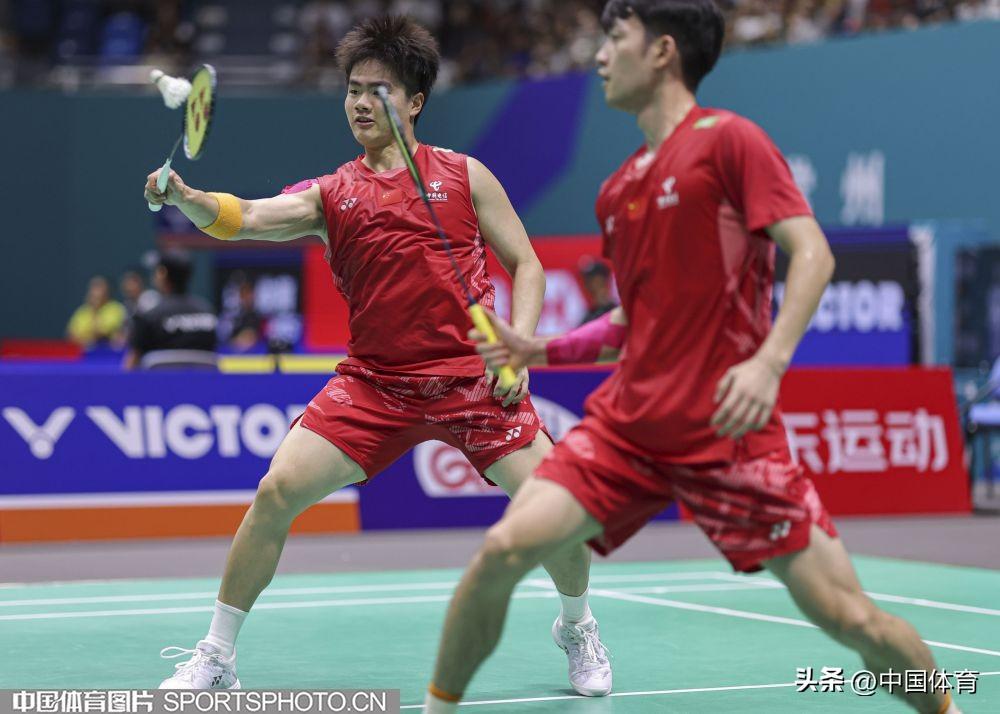 男雙1/8決賽中,中國組合梁偉鏗/王昶2比0擊敗隊友黃荻/劉陽,晉級8強。