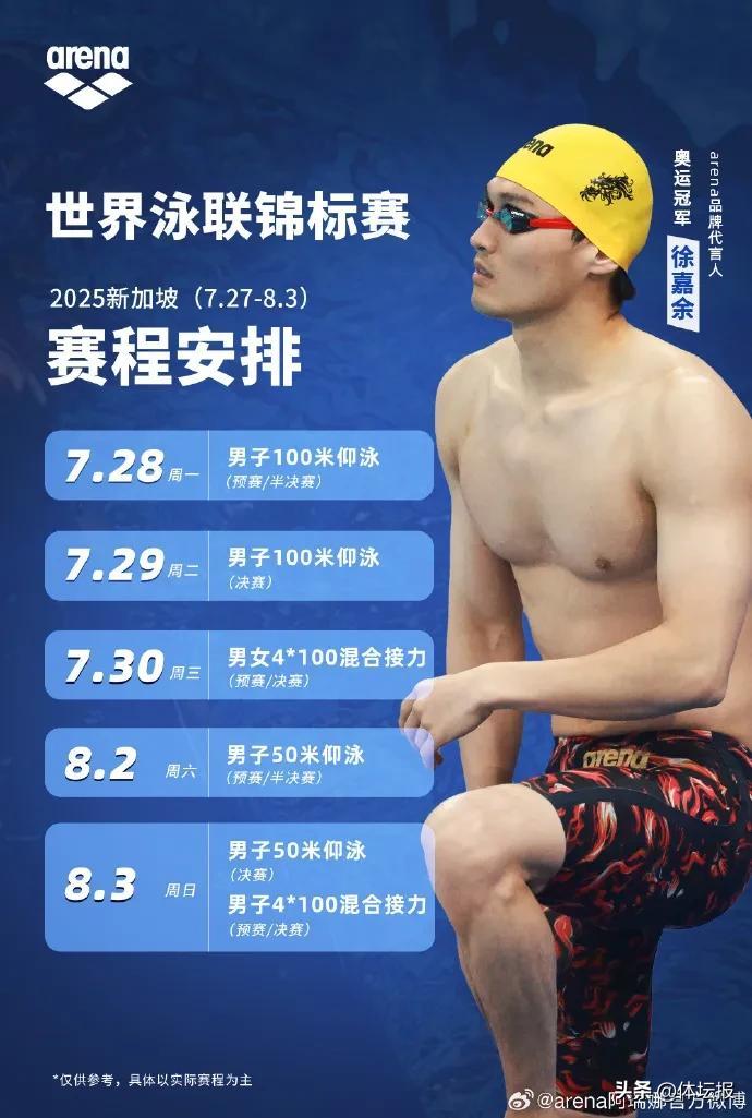 他將參加男子50米、100米仰泳