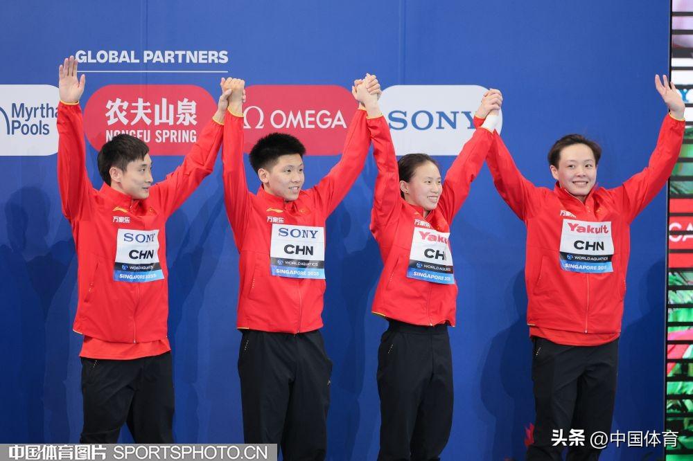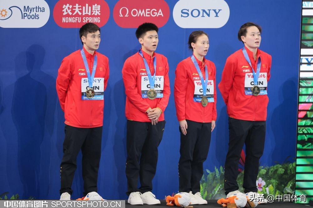 中國體育訊 北京時間7月26日,2025年新加坡世界游泳錦標賽跳水項目正式開賽。在下午進行的混合團體決賽中,由曹緣、陳藝文、陳芋汐、程子龍組成的中國隊未遇任何挑戰,以八輪總分466.25分摘金,開門紅。墨西哥隊以總分426.30分獲得銀牌,日本隊以409.65分獲得銅牌。(中國體育圖片特派記者 鹿麟 攝)