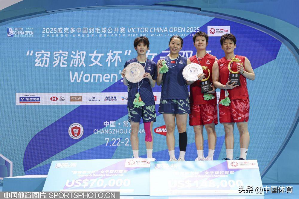 中國體育訊 7月27日,2025年中國羽毛球公開賽在常州奧體中心體育館展開收官日爭奪。在女雙決賽中,中國組合譚寧/劉聖書2比0戰勝隊友賈一凡/張姝賢,獲得冠軍。(中國體育圖片 張昕 攝)