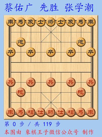 是輪虎隊中領袖人物,江湖金馬車蔡佑廣在執紅棋與聯隊主將,特級大師,象甲廣東主力張學潮的比拼中。