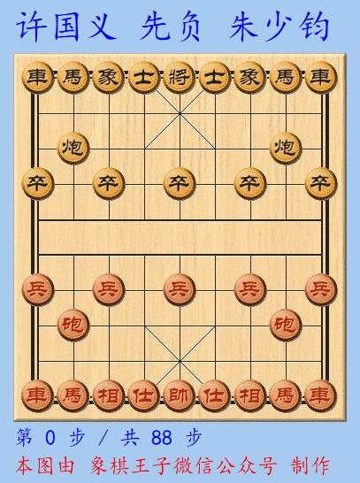 朱少鈞馬炮局中,瞧准許國義的一個出帥大漏,黑方當即一個回馬踩炮,力奪一子,黑馬炮雙卒士象全對馬雙兵仕相全,88手多子制勝。
