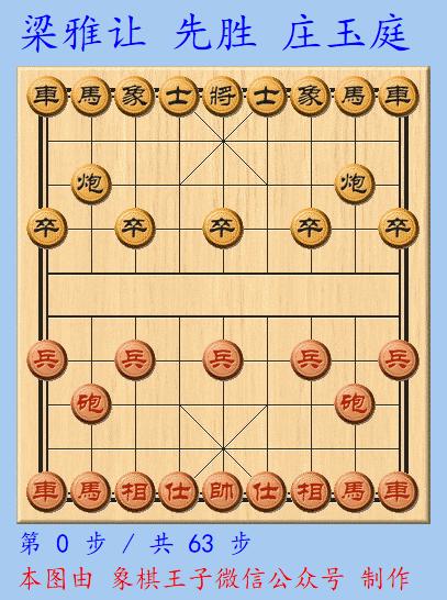 虎隊中03年學生強手梁雅讓執紅棋在與潮汕隊莊玉庭特大的戰鬥中,兩人仙人指路對挺卒局。