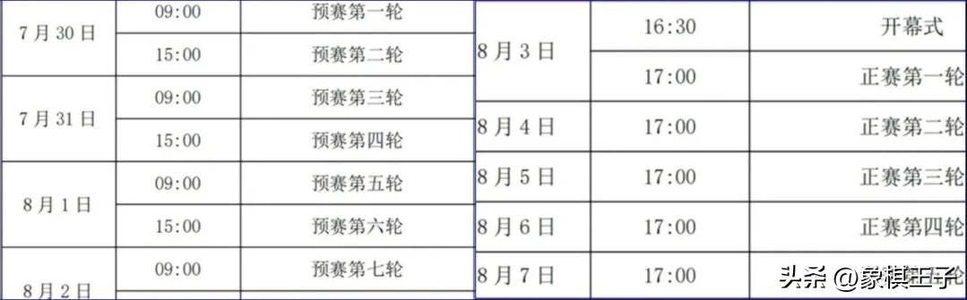 預選賽的戰程,7月30日至8月1日,每天上午九點、下午三點一輪,8月2日上午九點,最後一輪大決戰。