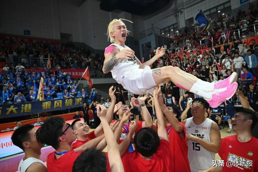 哨聲響起的那一刻,全場歡呼沸騰。回過神來的李聰聰迅速被隊友和球迷們包圍,一道“金色閃電”被拋向空中。