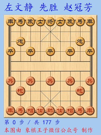 左文靜殘棋車馬底兵雙相對車炮卒單缺象,紅瞧準對方失誤,快速的連喫黑炮卒象,盤上瞬成車馬必勝車雙士,紅方激戰177手勝出。