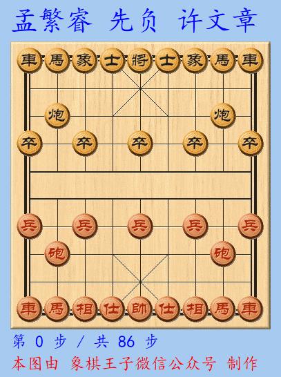 黑若卒1進1便上當,許文章目光敏銳,黑方卒6進1,不予理睬,紅接下來馬九進八,揮馬撲槽。