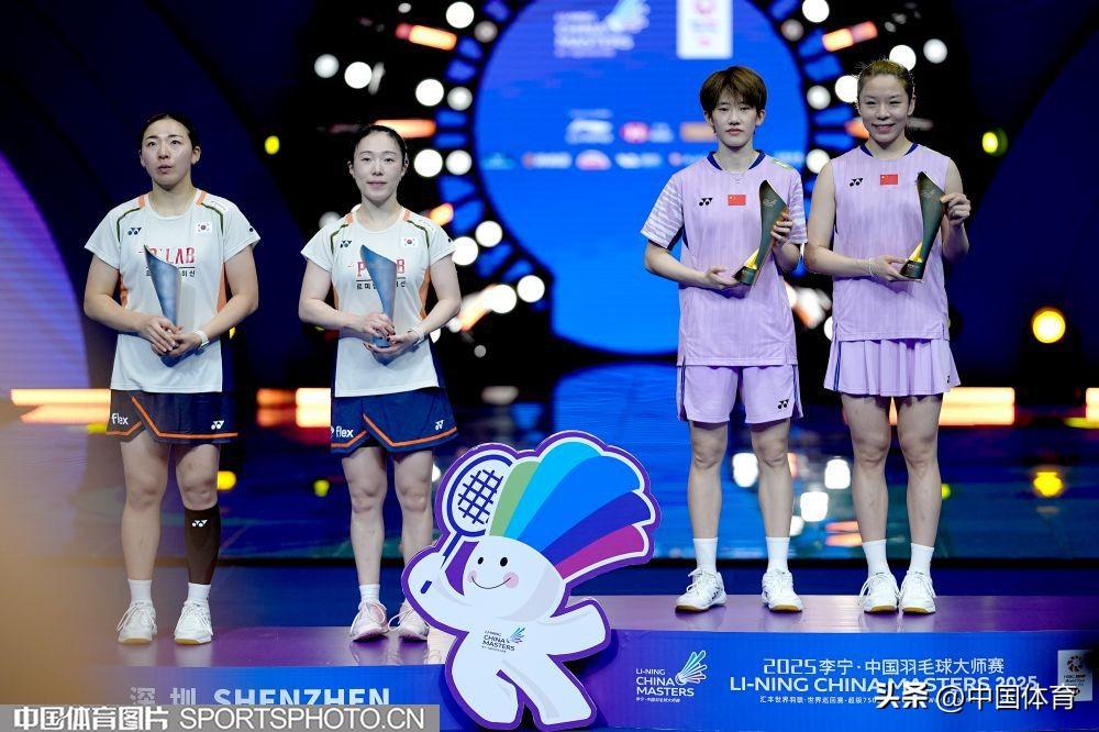 中國體育訊 9月21日,2025中國羽毛球大師賽在深圳市體育中心體育館展開收官日的爭奪。在剛剛結束的女雙決賽中,中國組合賈一凡/張殊賢2比1(21比19、16比21、21比13)戰勝韓國組合金慧貞/孔熙容,斬獲金牌。這是兩人繼中國香港公開賽女雙奪冠後背靠背奪冠,也是“凡賢”組合拿下的第三個冠軍。(中國體育圖片 倪敏哲 攝)
