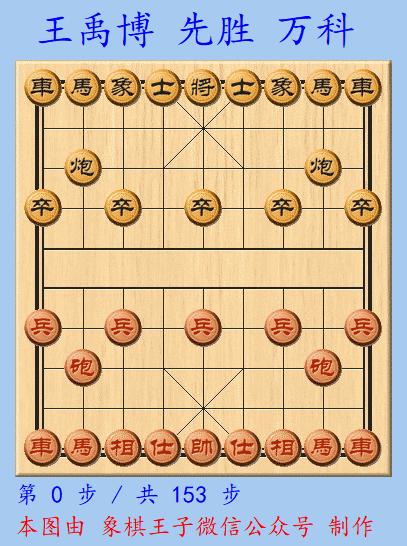 紅方得子,雙方血戰153步,車馬炮三兵仕相全對車炮雙卒單缺象,紅多子多相,王禹博復仇成功。