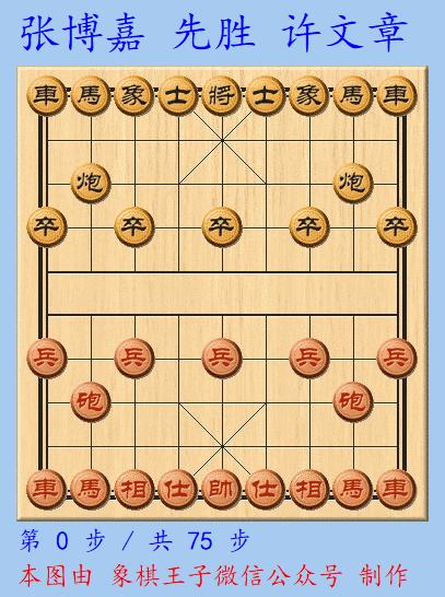 黑退車殺兵,紅提車砍炮,黑平車欲抓炮,當是時,紅方75手迅速弈出相五進三揚高相的妙着,黑瞬即丟子,許文章告負,張博嘉絕殺一擊,幫助冀軍奪得二連勝。