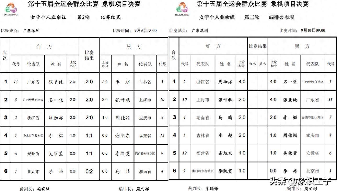 上海隊張葉秋、吉林隊馬超、湖南隊馬晴、香港隊李韜2分,重慶隊周佳穎、福建隊謝旭東、澳門隊李凱雯、安徽隊吳榮萱1分,北京隊李冉0分。