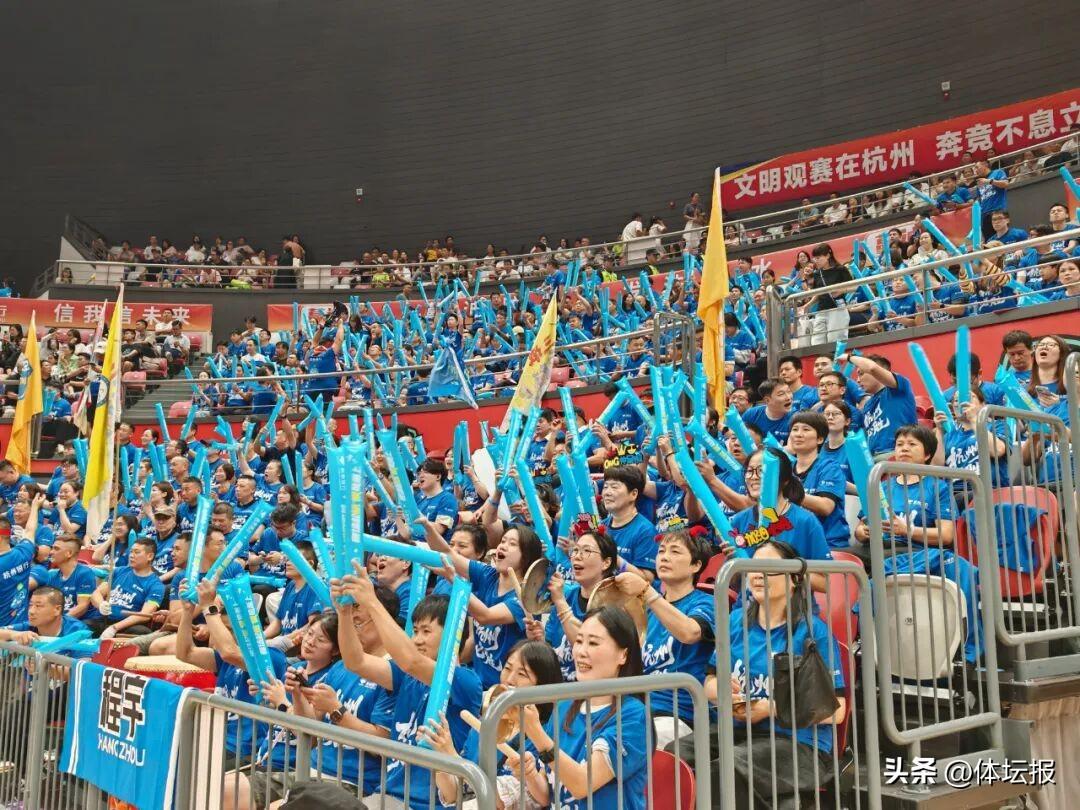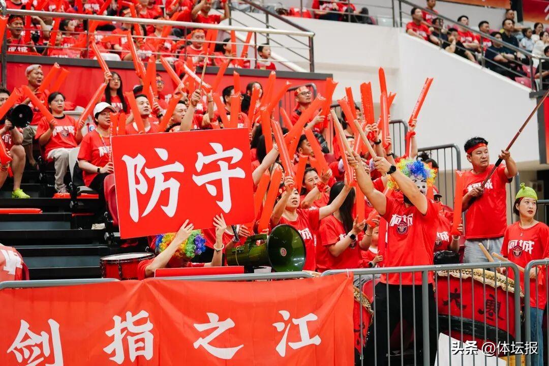 “杭州隊沖沖衝!”“運動柯城 萬事可成!”比賽當天,現場氣氛格外熱烈,雙方啦啦隊毫不吝嗇嗓門,以最大的吶喊聲,爲自己家鄉的隊伍送出最激情的助威。隨着比賽進行,雙方比分鱗次櫛比,兩地的啦啦隊隊員們也越發起勁地揮舞着手中的應援道具,喊出的口號聲震耳欲聾,比賽的緊張感和刺激性在雙方激烈的對抗中不斷升級,整個體育館都沉浸在一片熱血沸騰之中。