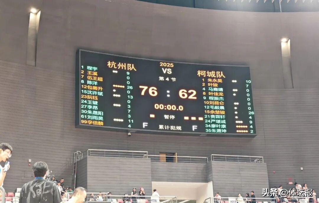 9月22日,“浙BA”城市爭霸賽第六輪的最後一場比賽火熱進行。杭州隊坐鎮拱墅運河體育公園體育館主場迎戰柯城隊。最終,經過四節比賽的激烈鏖戰,杭州隊以76:62取得五連勝。
