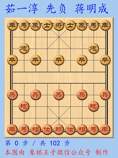 當中後手與茹一淳大師的一仗,雙方苦鬥了102步,蔣明成中盤謀兵,擊破紅棋仕相防線下來,進入利好的殘局形勢。