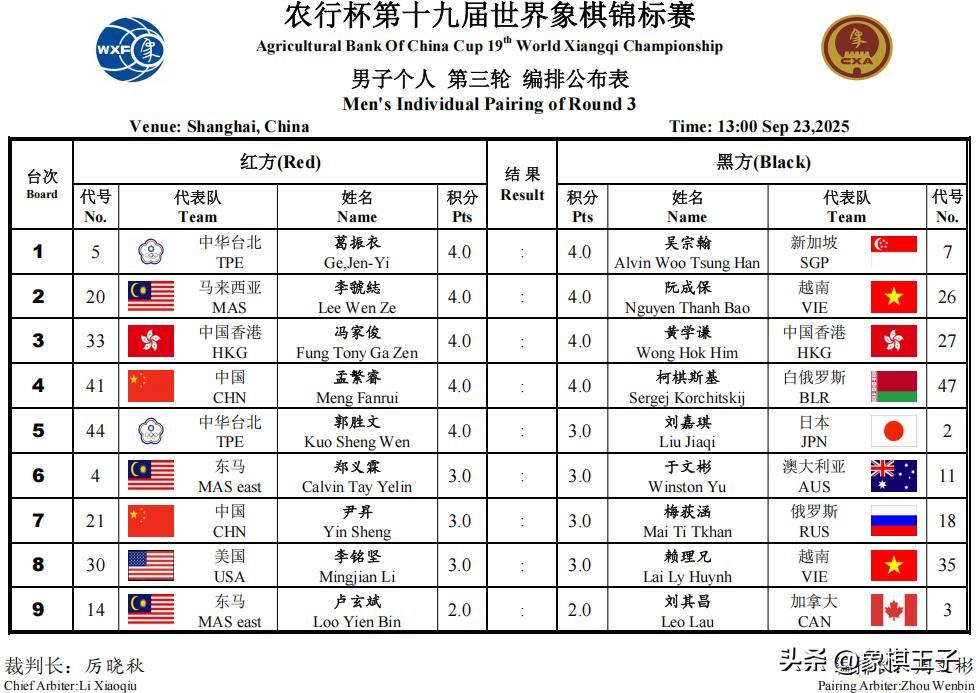 賽會23日下午一點,晚上七點,進行本次大戰雙賽的第3、4輪角逐,世錦賽搶分已到強強對決時刻,上海杯小組拼奪更到了近決勝時分,誰能一舉殺出,衝向領先與出線,象棋王子抖音號持續直播。
