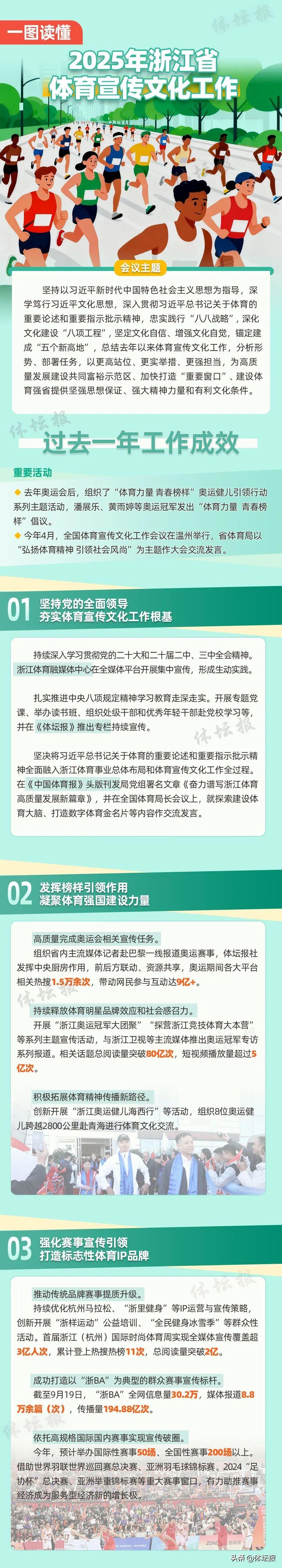 9月23日,2025年全省體育宣傳文化工作會議在杭州召開。大會總結去年以來體育宣傳文化工作,分析形勢、部署任務,以更高站位、更實舉措、更強擔當,爲高質量發展建設共同富裕示範區、加快打造“重要窗口”、建設體育強省提供堅強思想保證、強大精神力量和有利文化條件。
