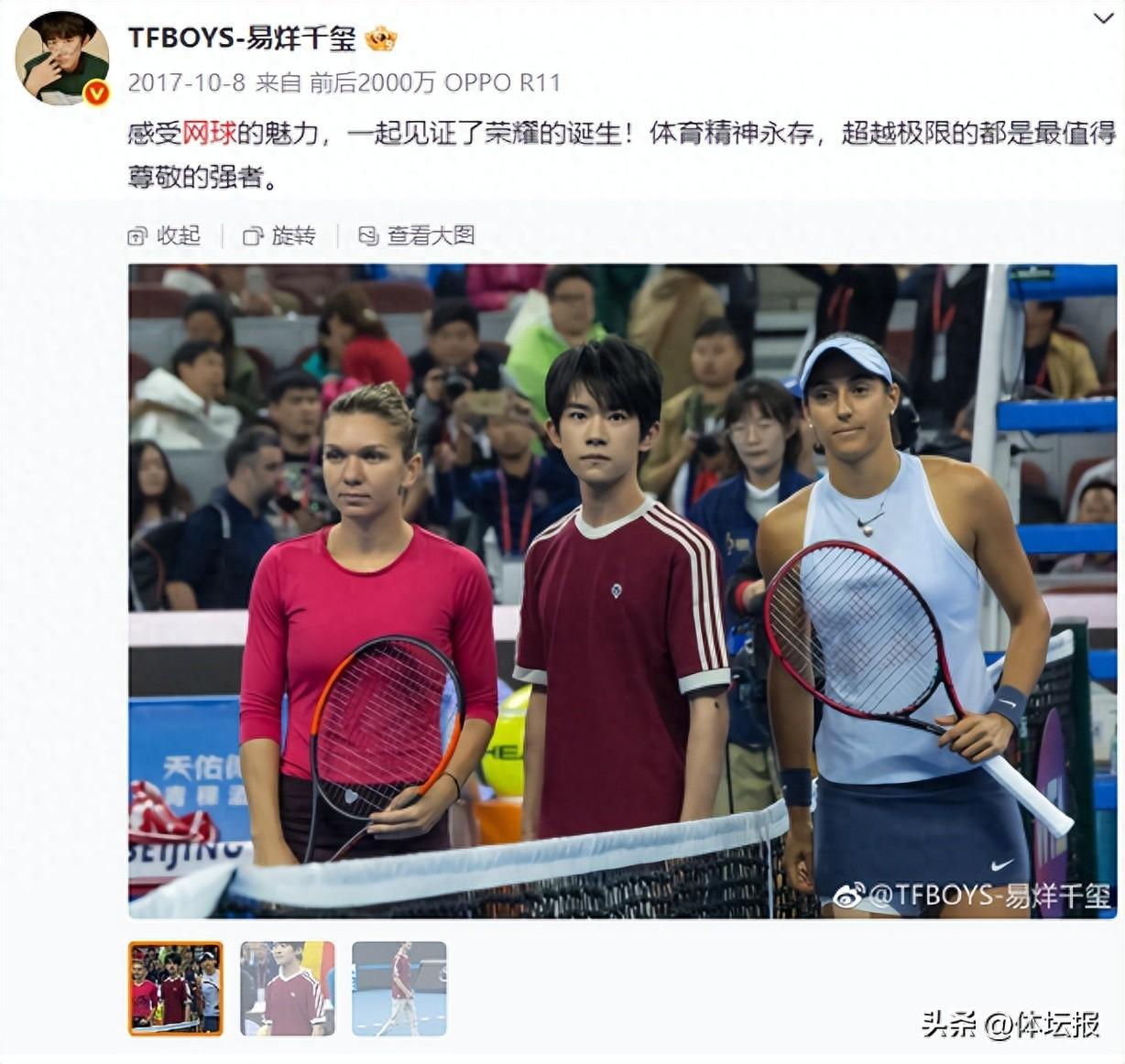 2017年10月8日,在中網女單決賽開始前,易烊千璽曾爲哈勒普與加西亞挑邊。
