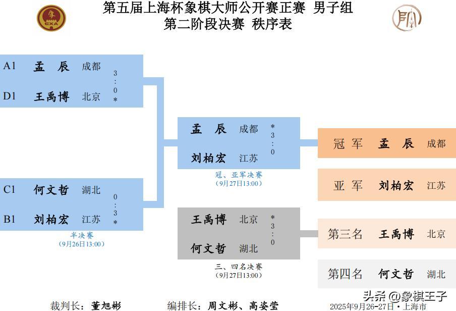 劉柏宏認負,獲得亞軍,十六歲的最年輕特大,在這個年齡能取得上海杯的第二,也是已很了不起,王禹博在季軍戰中擊敗何文哲,獲季軍,何文哲殿軍。