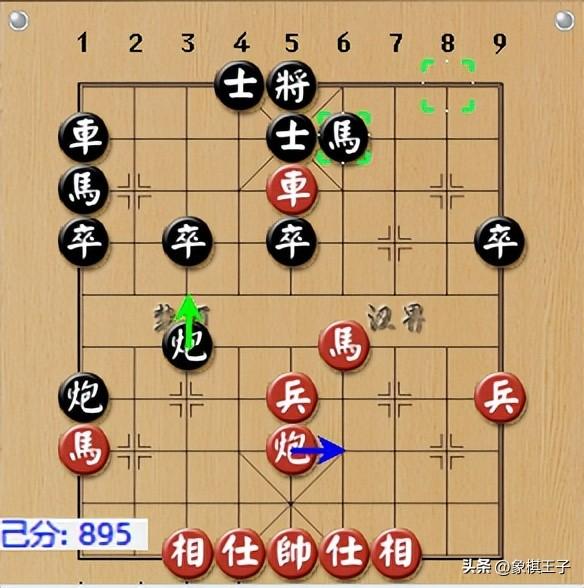賴理兄長考下來,走了一步馬8進6,這步棋,紅如炮五平四,平炮吊住黑馬,黑棋就虧損超八百分,十分危急。