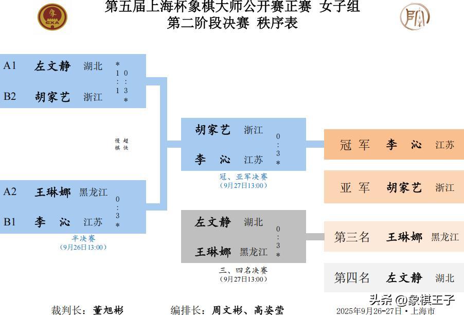 女子組裏,兩位00後的美女棋手,江蘇隊李沁與浙江隊胡家藝,繼從小組中力壓衆強手出線後,又各自在半決賽中擊敗王琳娜、左文靜,對決於冠軍戰。