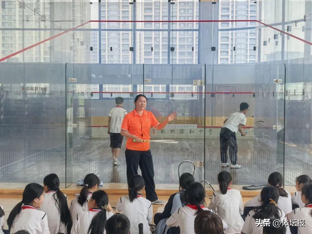 濱和中學還開設了名爲“樂鍛GO GO GO”的壁球課程,幫助學生認識壁球運動、學習執裁方法、欣賞壁球賽事。濱和中學壁球隊教練王瑤介紹,所有學生都會參與校內壁球賽,選手、裁判、觀衆全由學生組成。通過這三類角色,學生們可以從多角度體驗壁球文化。體育老師一般不在比賽過程中進行干預,僅在賽後進行點評和覆盤。