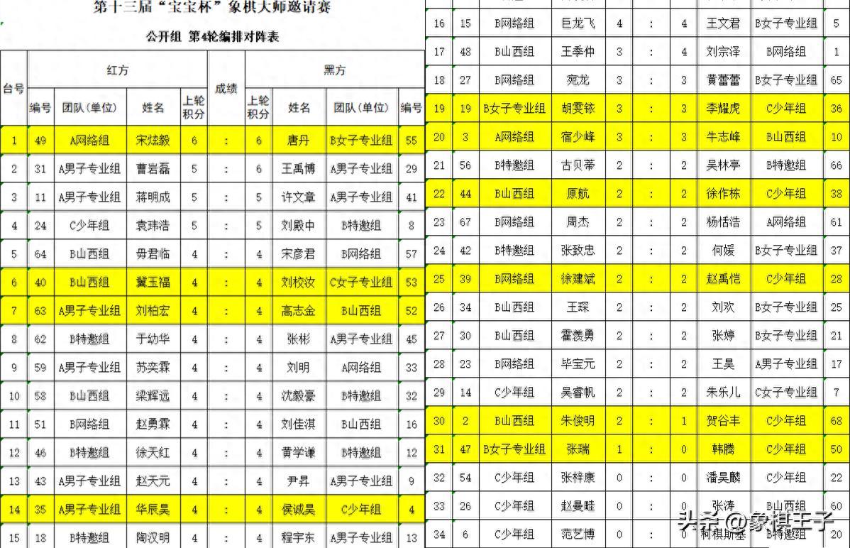 大賽2日上午八點半、下午三點,進行本次比賽第4-7輪的中期關鍵大斗,誰能一舉突圍,領先羣雄,搶到殺入四強半決賽、決賽的良機,象棋王子也將繼續進行全程的直播和報道(抖音:象棋王子),敬請關注、支持、守護,謝謝!