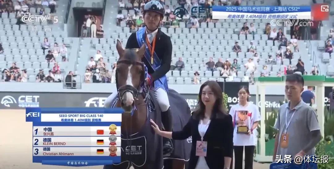 最終,張興嘉與PHILEMON VAN T&L,在一輪動力十足、流暢自如的跳躍後,以零罰分、67.37秒贏得冠軍。德國騎手貝恩德·克萊因(BERND KLEIN)與DANCING NINI Z,以零罰分、67.61秒,0.24秒的劣勢屈居亞軍。前世界第一、德國奧運騎手克里斯蒂安·阿爾曼(Christian Ahlmann)與卡西莫多,以零罰分、71.55秒摘得季軍。
