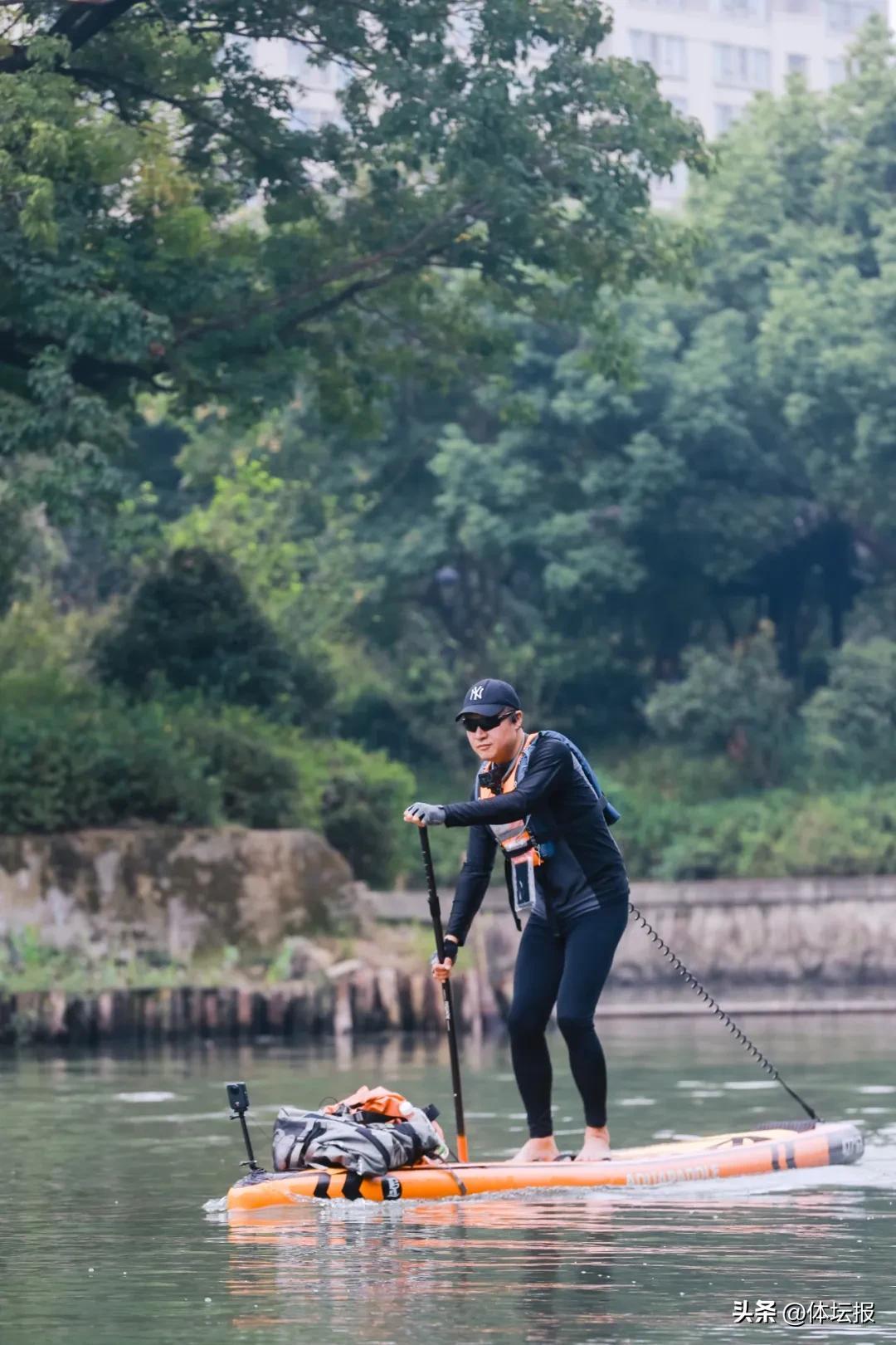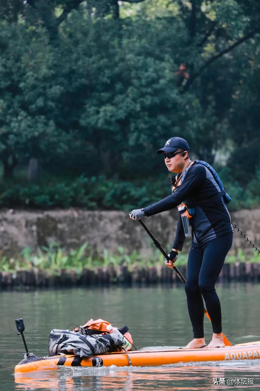 而他再度重拾與自然水域的聯結,源於“向野生長”的家庭教育理念。2023年,許立南給兒子報了皮划艇體驗課,本是陪同前往的他卻被這項運動深深吸引,最終成了俱樂部的正式學員。“一開始在西溪溼地的部分水域劃皮划艇,後來覺得槳板摺疊收納方便,攜帶起來更實用,日常就以划槳板爲主了。之後還去參加了一些比賽,嘗試了不同水域。”