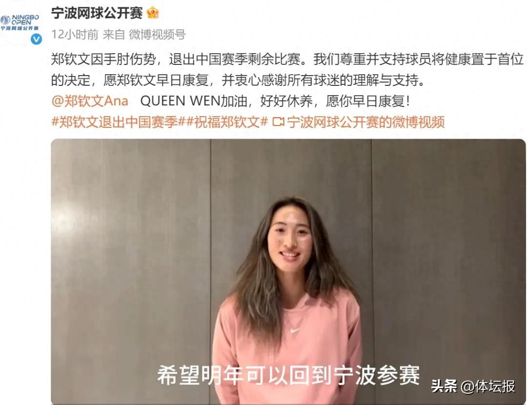 由於傷病,鄭欽文昨晚宣佈退出今年的武漢網球公開賽與寧波網球公開賽,這意味着她將提前結束中國賽季。