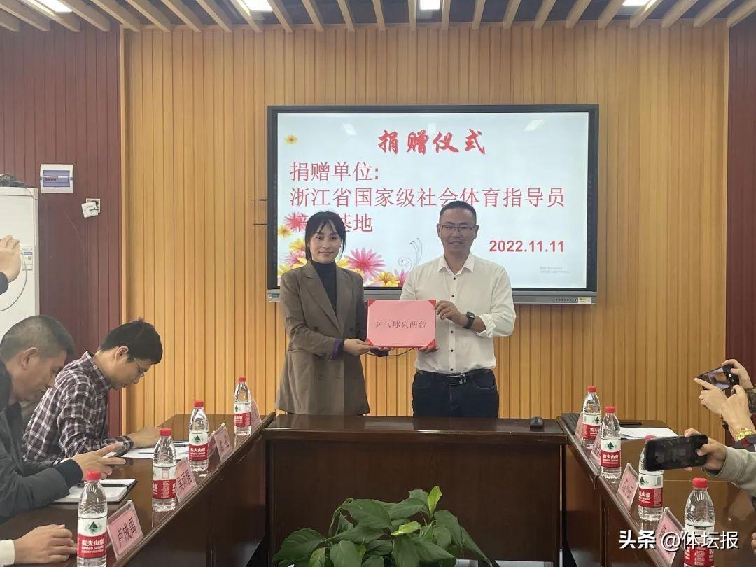 參加活動一行人首先來到了尚湖鎮中心小學,浙江省國家級社會體育指導員培訓基地和浙江蘭威體育用品有限公司分別爲學校捐贈了乒乓球桌和跳繩、足籃球等體育器材。隨後,浙江省足球協會教練員講師、國家級足球裁判員郭強爲磐安當地的社會體育指導員和學校老師做了“關於長三角及金華校園足球發展現狀與日本校園足球訓練理念和方法”的講座,傳授相關的足球理念和知識。