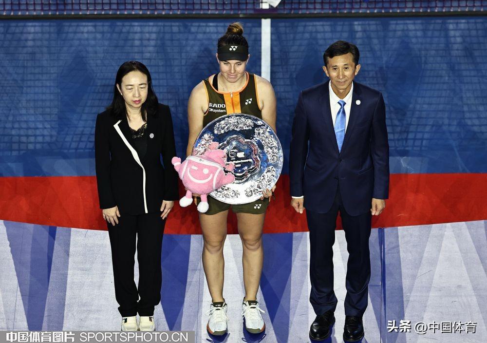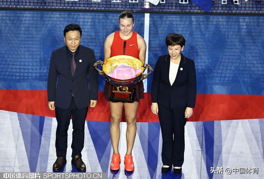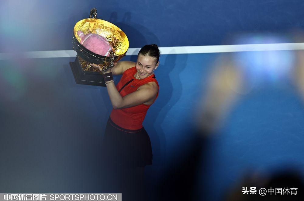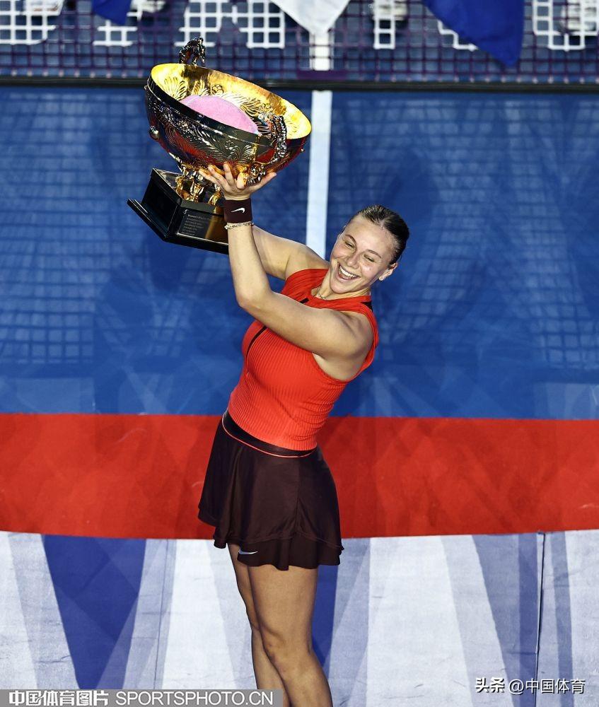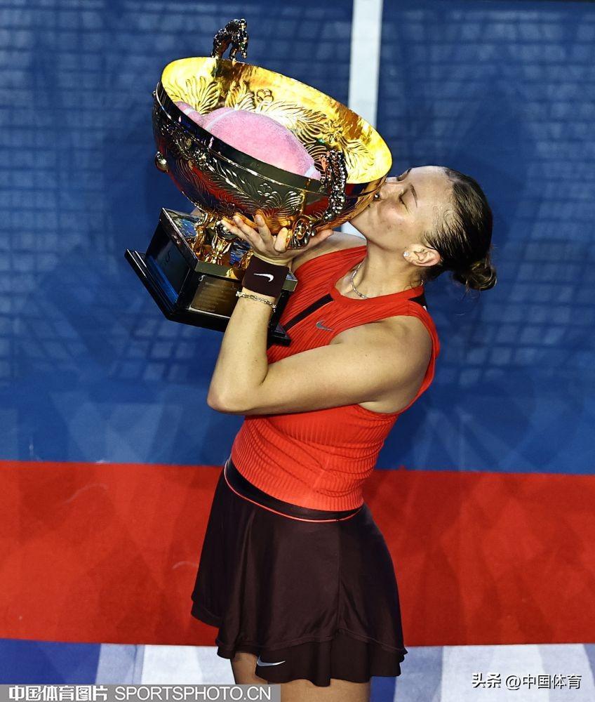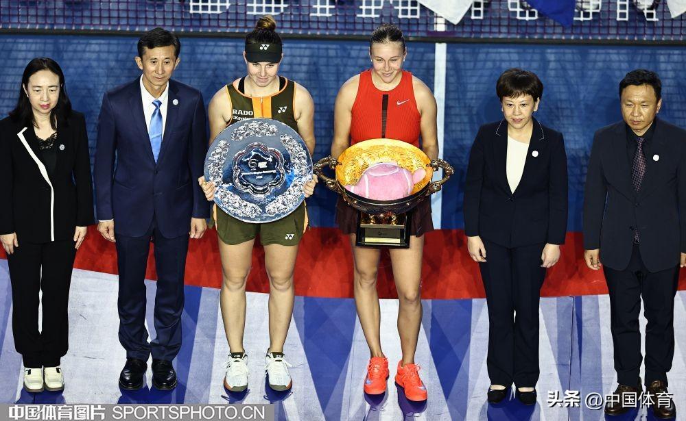 中國體育訊 10月5日,2025中國網球公開賽在國家網球中心進入第11個比賽日。在女子單打決賽中,美國選手阿曼達·阿尼西莫娃2比1戰勝捷克選手諾斯科娃,首次捧起中網女單冠軍獎盃。(中國體育圖片 王憲民 攝)