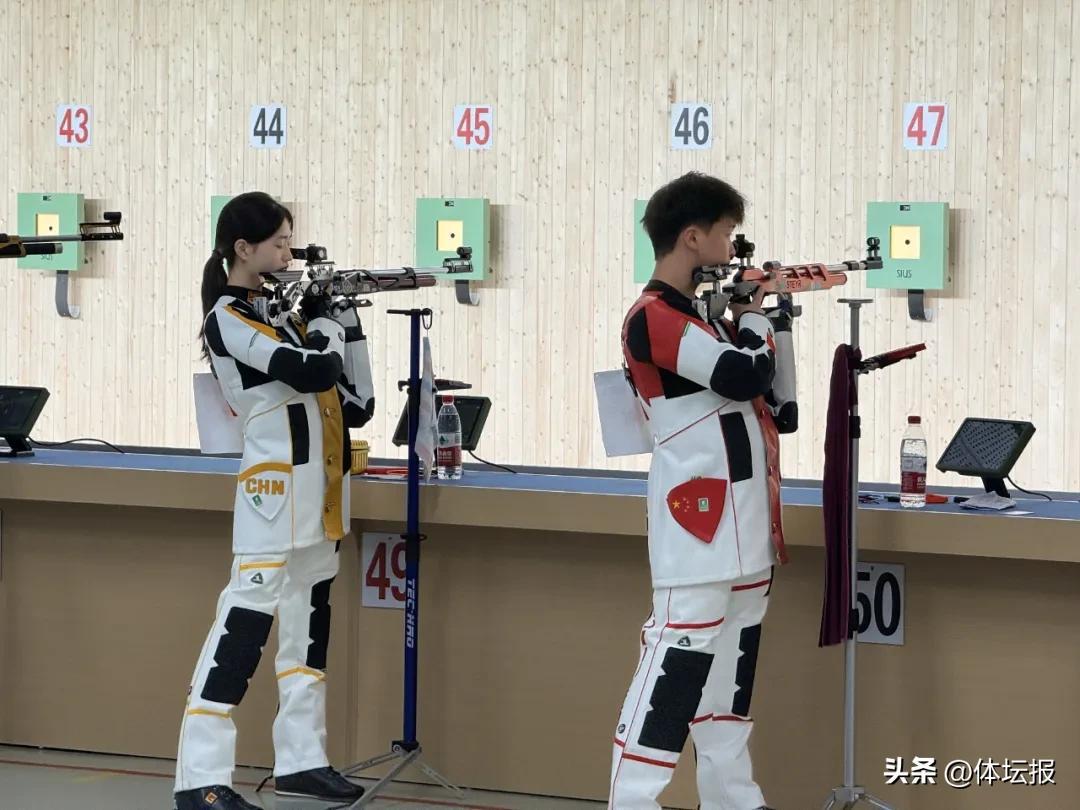 上午9時,10米氣步槍混合團體資格賽正式拉開戰幕,共有46對組合參與角逐,多位奧運冠軍、世界冠軍齊聚一堂。記者還在現場見到前來觀賽的奧運冠軍夫婦龐偉、杜麗。