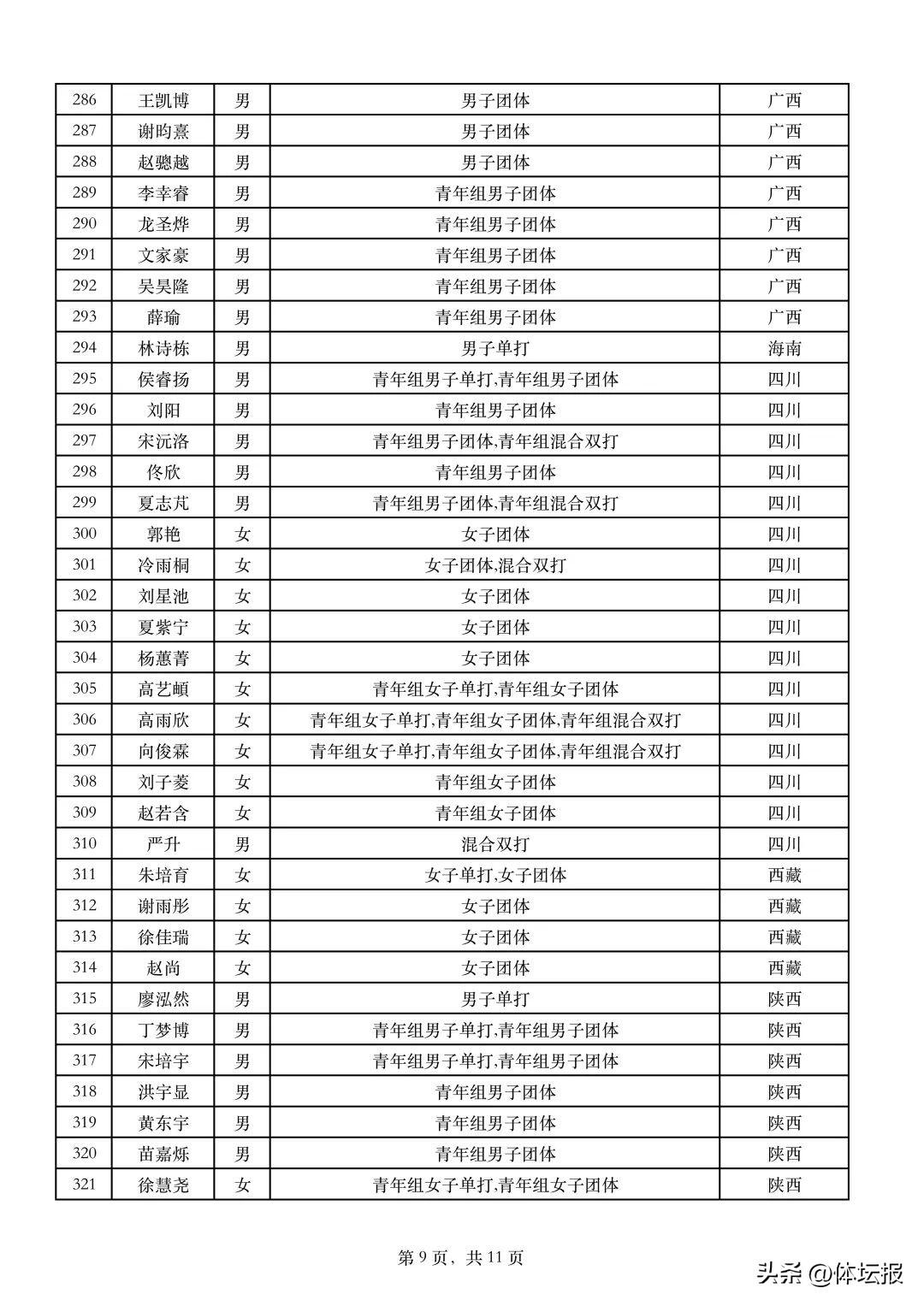 來源:中國乒乓球協會官網、全運會官網