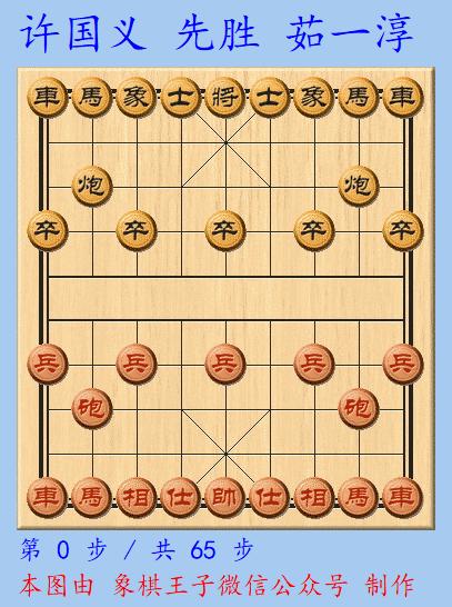 紅以馬炮雙兵仕相全對雙馬卒士象全,炮兵吊馬將,105手入馬將軍,得子而勝,許文章贏回一陣。