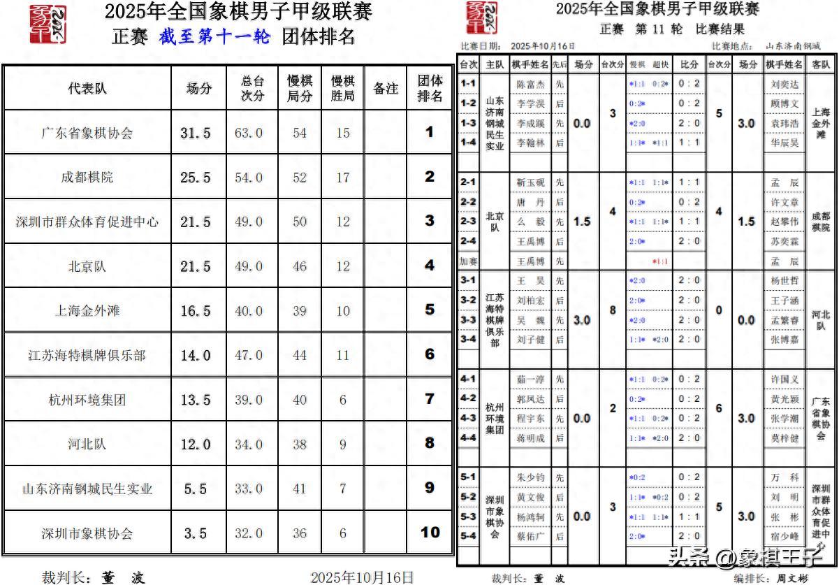 大賽兩階段十一輪後,廣東31.5分,高居第一,成都25.5分,緊隨而後,北京、深圳21.5分。