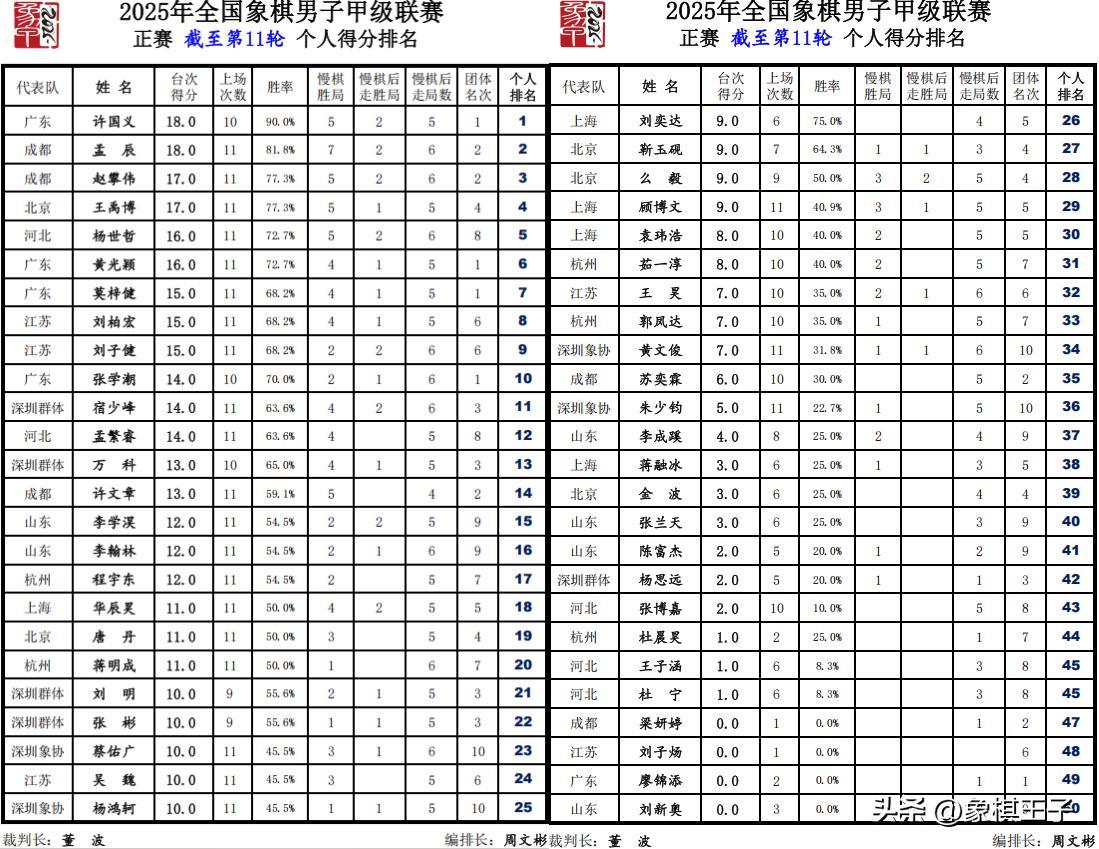 個人得分,許國義、孟辰18,趙攀偉、王禹博17,楊世哲、黃光穎16,莫梓健、劉柏宏、劉子健15,孟繁睿、張學潮、宿少峯14,許文章、萬科13,程宇東、李學淏、李翰林12。