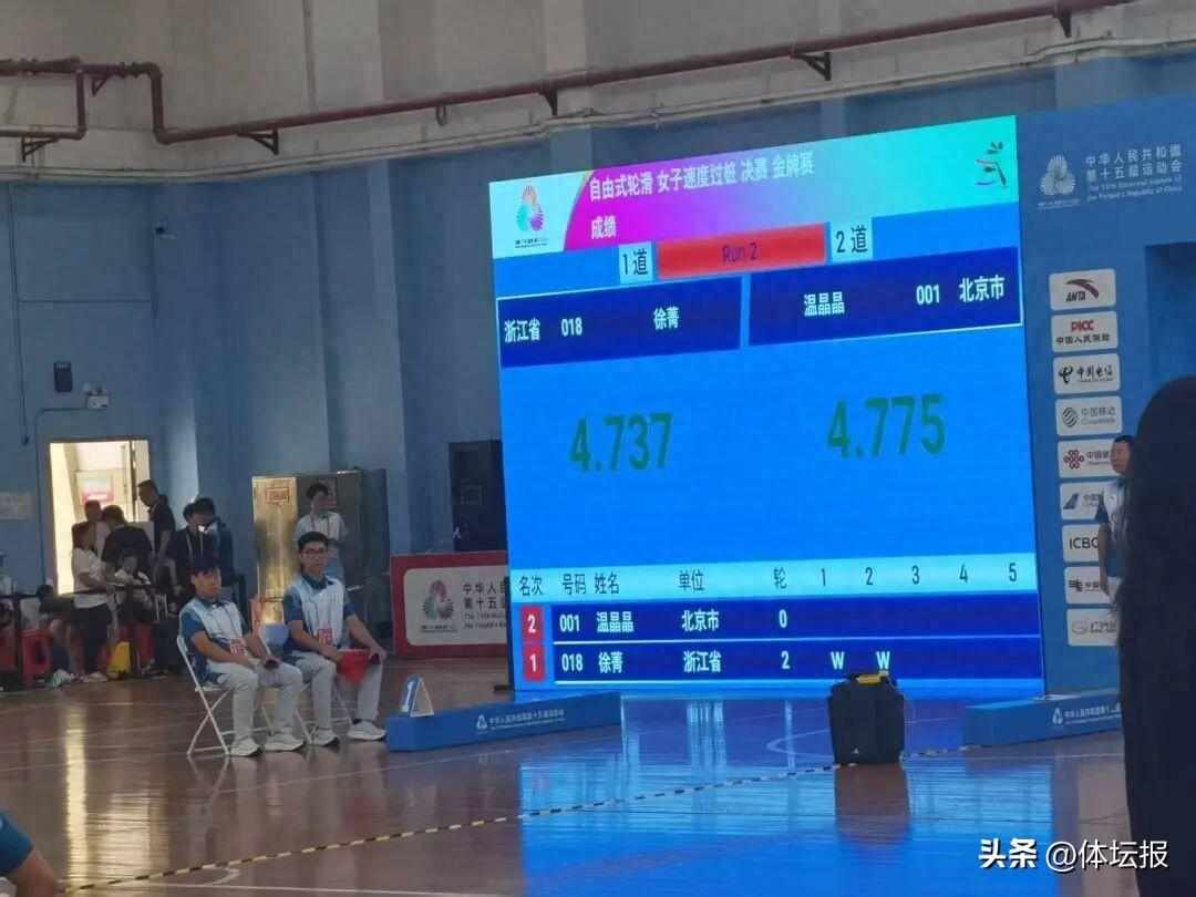 10月18日,在十五運自由式輪滑女子組速度過樁比賽中,我省運動員徐菁經過兩輪比拼均以微弱優勢勝出,最終以2:0戰勝對手,爲浙江隊奪得本屆全運會羣衆項目輪滑首枚金牌。