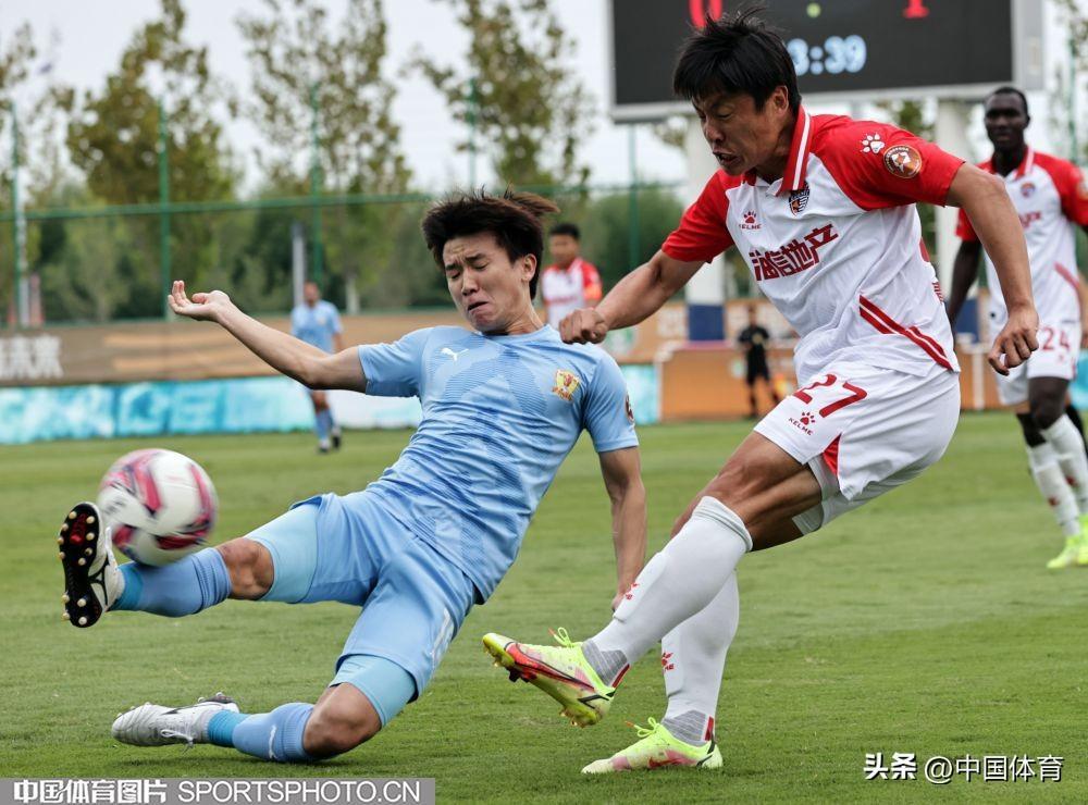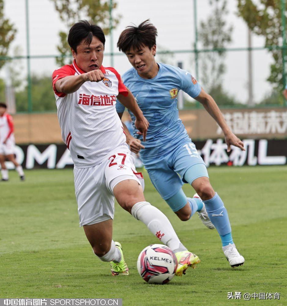 中國體育訊 9月19日,在2022年中國足球協會甲級聯賽第二十二輪(唐山賽區)的一場比賽中,四川九牛隊以0比2負於青島海牛隊。圖爲比賽場景。(中國體育圖片 王憲民 攝)