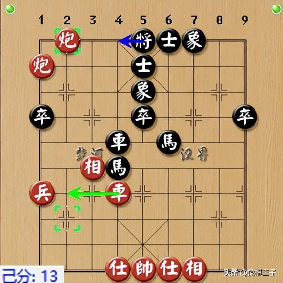 何文哲目光機敏,紅趁着黑提車殺紅過河兵之機,沉八路炮入紅底線,要重炮叫殺,黑這時出老將,仍是差不多,紅暫無殺。