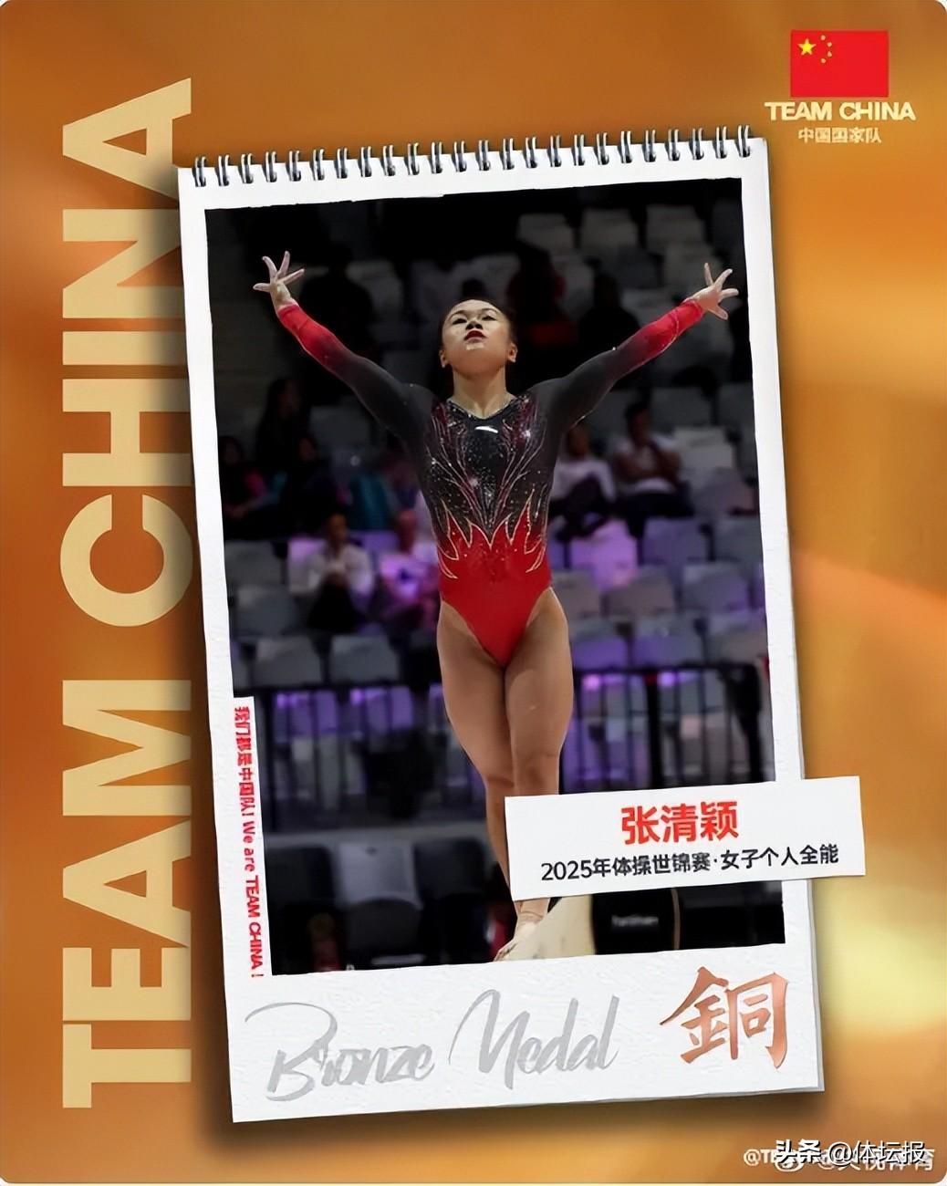北京時間10月23日晚,2025年世界體操錦標賽女子個人全能決賽在印尼雅加達落幕。18歲的浙江小將張清穎憑藉出色發揮,以總分54.633分斬獲銅牌。