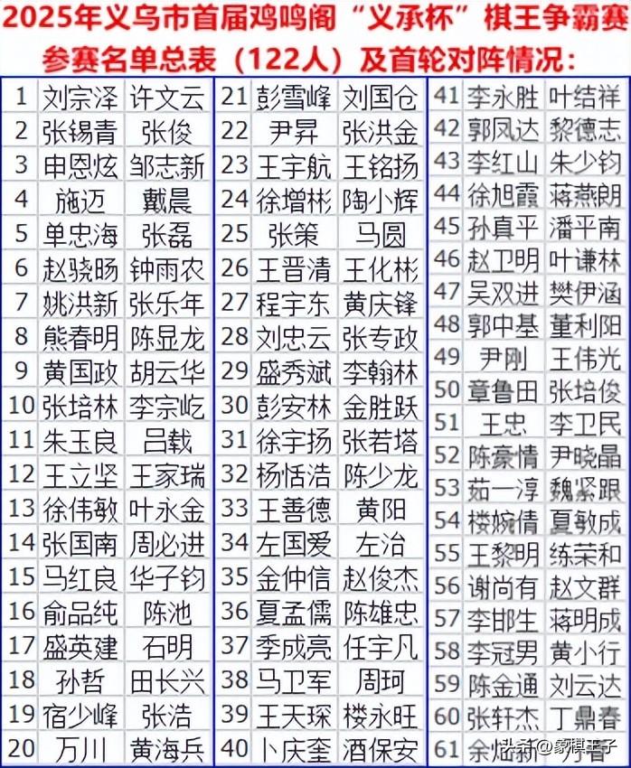 參賽名單上,122位強將報名,其中特大、大師十七位,尹昇、程宇東、蔣明成、茹一淳、郭鳳達、姚洪新、黎德志、王家瑞、李翰林、李冠男、宿少峯、王宇航、楊恬浩、王天琛、申恩炫、萬川、萬春,首輪中,就有郭鳳達對黎德志,這樣的大師對大師強戲。